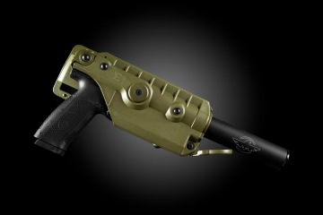 Designed for use with suppressed handguns, this ambidextrous holster provides reliable retention and compatibility with tactical silencers, while maintaining fast access under pressure.