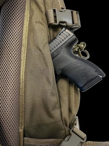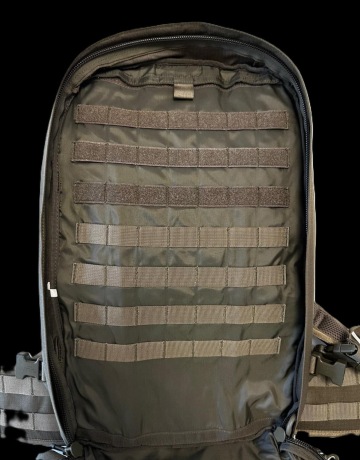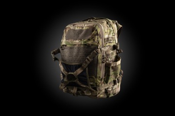 Laser-cut MOLLE panels on front, sides, and waist belt for quick-access loadout customization.